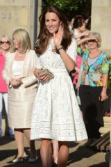 Kate wore a white knee length eyelet lace design from the australian label zimmermann during a stop at the sydney royal easter show and the sydney olympic park. Topshop and are kates top brands for her fast fashion frocks.